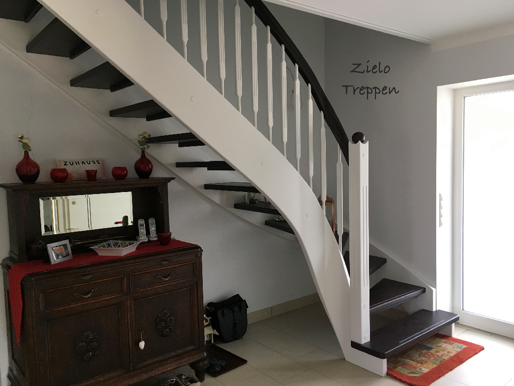 Weiße Treppe mit Trittstopp